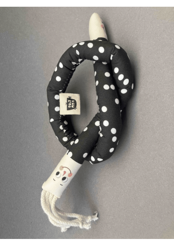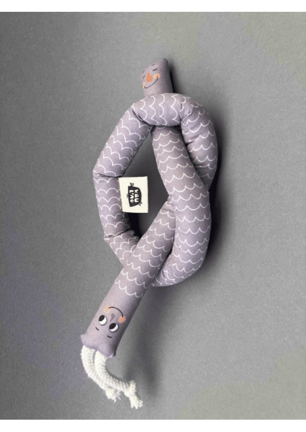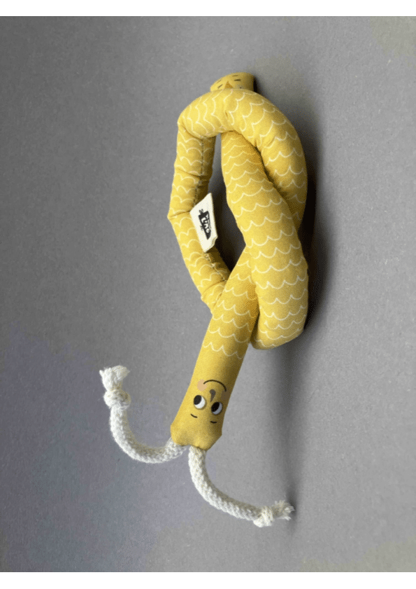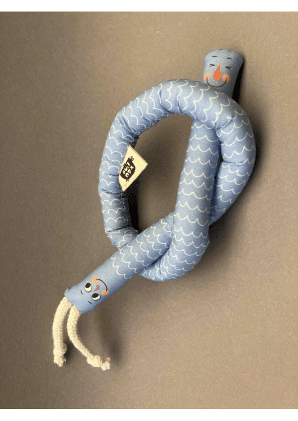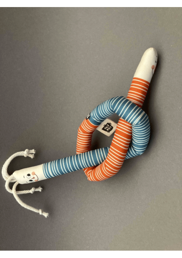 Dank seiner extra Länge bietet es jede Menge Spielspaß. Schon das einfache Wellen und Biegen sorgt für Begeisterung. Der Regenwurm kann sogar verknotet werden – und bleibt auch in dieser Form ein tolles Beißspielzeug. Ein sensorisches Highlight sind die Fühler aus Baumwollschnur. Je nach Variante sind sie entweder aus zwei dickeren (5mm) oder vier dünneren (3 mm) Schnüren gefertigt.