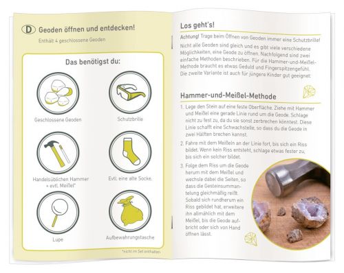 + inkl. Schutzbrille, Lupe, Aufbewahrungsbeutel und farbigem Booklet mit spannenden Infos zu verschiedenen Geodenarten