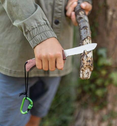 Das klappbare Schnitzmesser mit Holzgriff ist ein zuverlässiger Begleiter im Alltag sowie bei großen und kleinen Abenteuern im Grünen. Mit einem Karabiner kann das Messer am Rucksack, der Tasche oder der Jacke befestigt und bei Bedarf schnell vom Haken gelöst werden. Dank der abgerundeten Spitze wird auch Kindern ein problemloser und sicherer Umgang mit dem Schnitzmesser ermöglicht – so steht dem kreativen Äste-Schnitzen nichts mehr im Wege. Ob zum Zurechtschnitzen der Halterungen für Stockbrot am gemütlichen Campingfeuer, als vielseitig einsetzbare Ausrüstung bei der Wanderung durch den Wald oder zum Basteln mit Naturmaterialien: Dieses Schnitzmesser darf bei kleinen Entdecker*innen nicht fehlen.